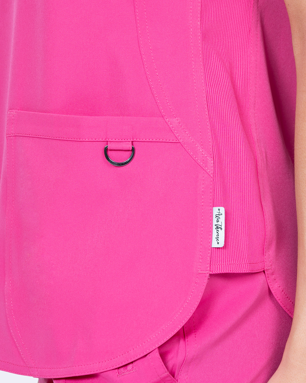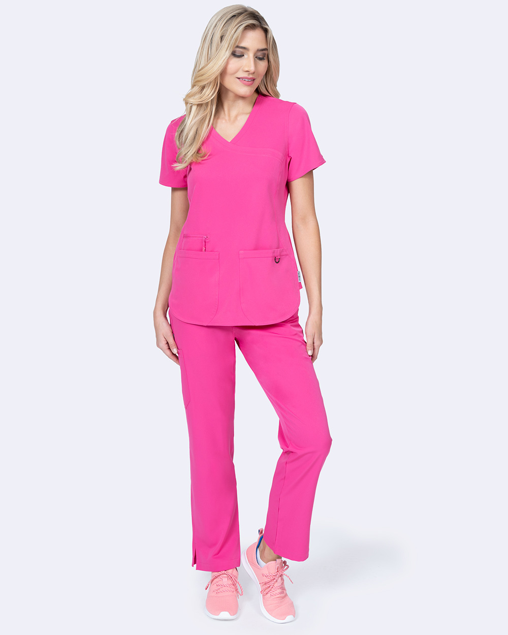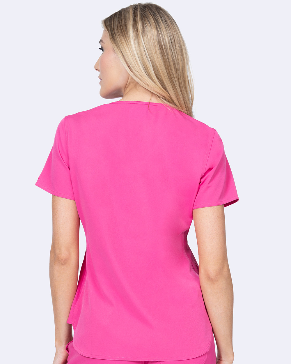 Boost your look in the most figure flattering mock wrap V-neck top.