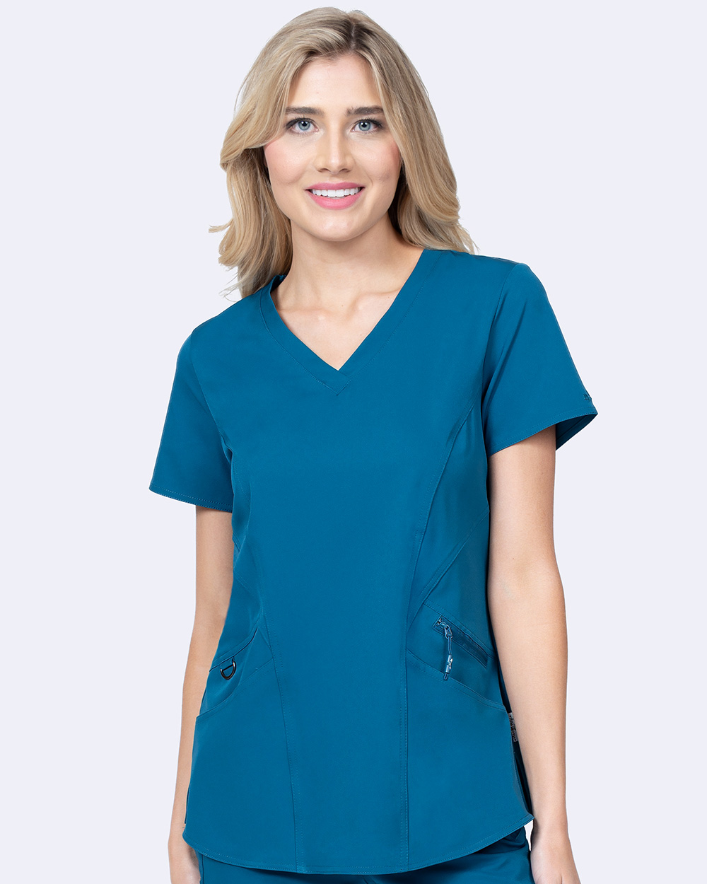 Freshen up your favorite scrubs with this V-neck designed to make moves.