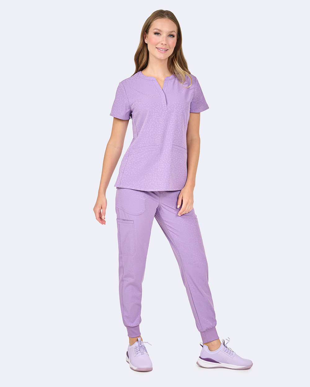 The soft, jacquard animal texture on this top brings dimension to your routine.