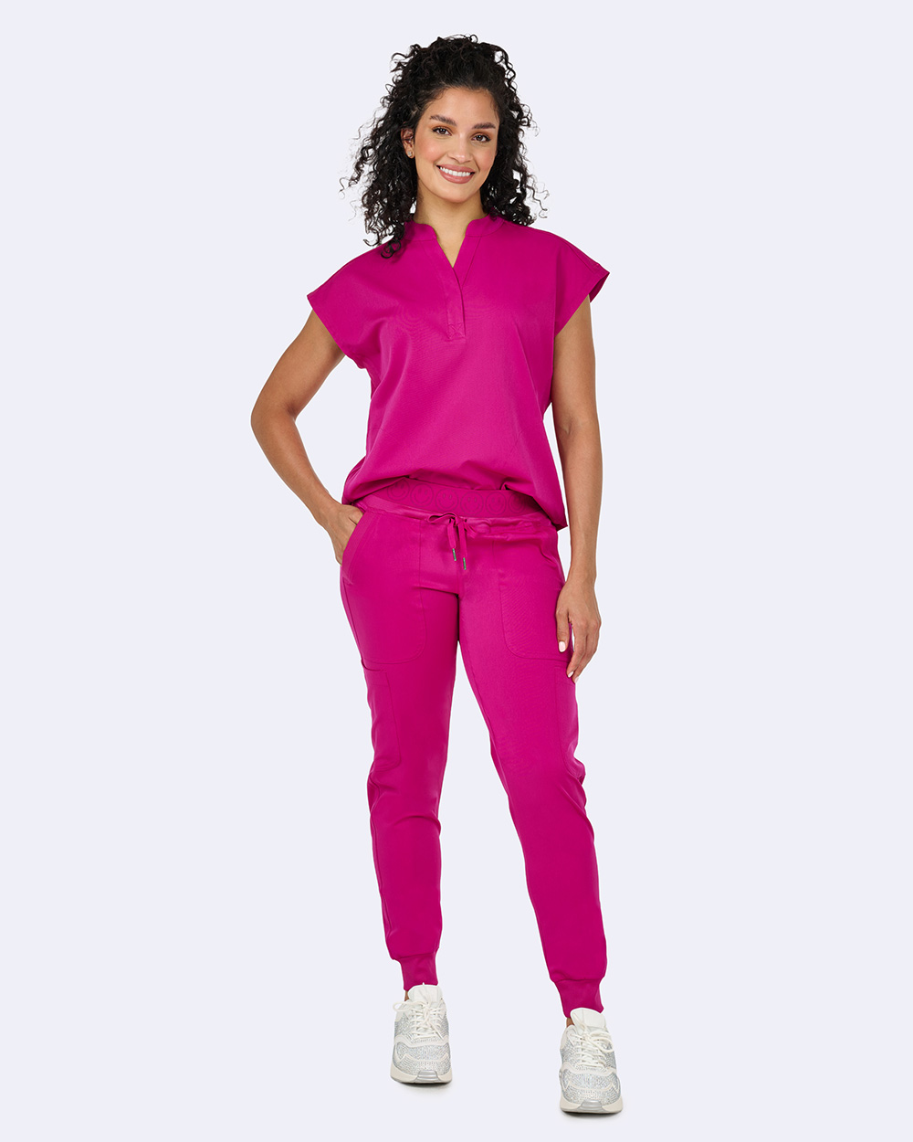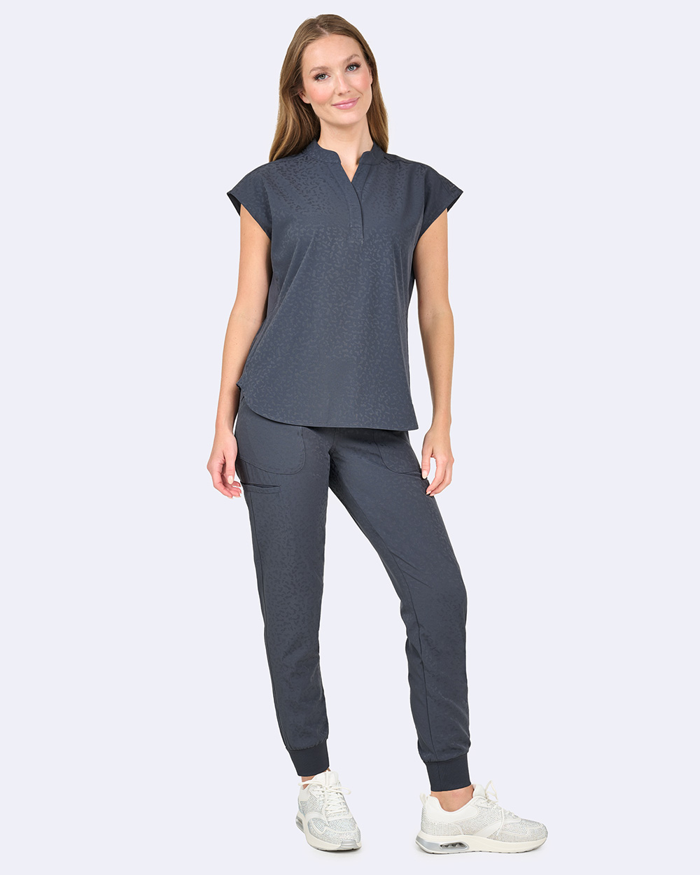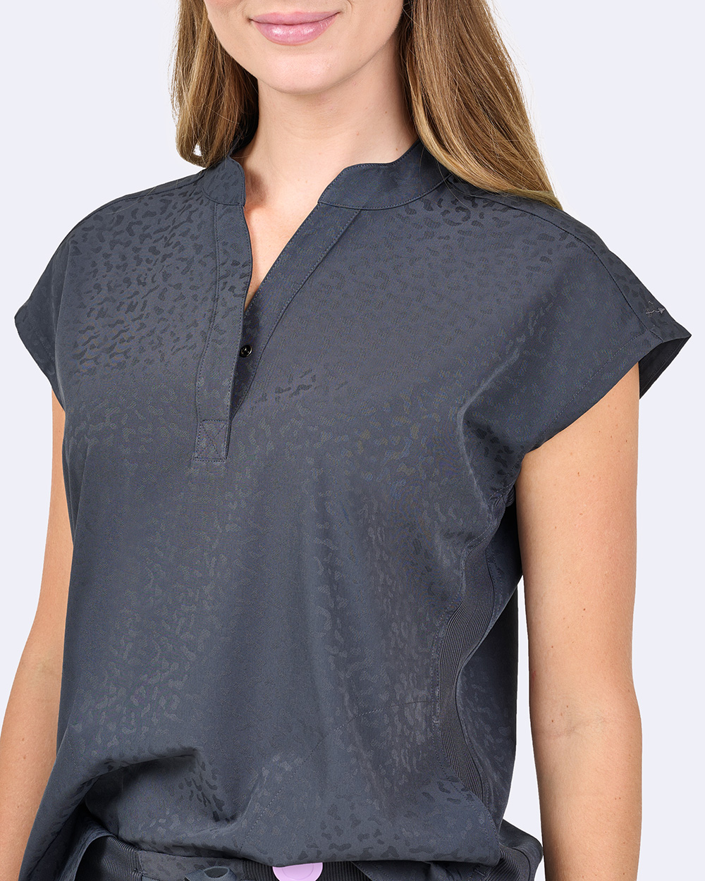 Switch up your style and get a fresh easygoing look with our dolman sleeve scrub top.