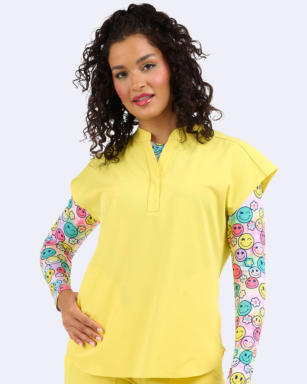 Switch up your style and get a fresh easygoing look with our dolman sleeve scrub top.